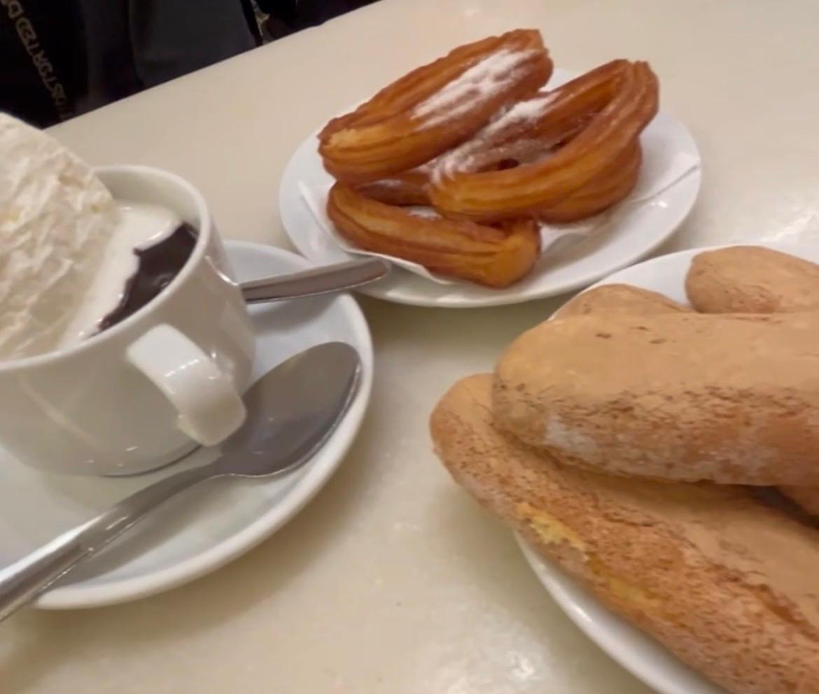 旅のお疲れは、現地っこに囲まれながら、現地方式で癒しましょう。 揚げたてサックサクのチュロス、優しいお味のメリンドロ、これを思う存分スイソ(チョコレートドリンクの生クリームのせ)につけてお召し上がりください。疲れも吹き飛びます!ただ、揚げたてが食べられる時間帯を見計らっていってくださいね