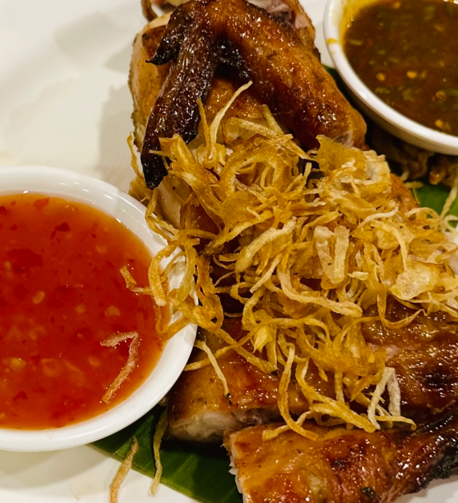 タイの屋台は抵抗あるけど、ローカル感のあるレストランを体験してみたい人にオススメ!ガイヤーン(炭火焼きの鶏) 「サバイジャイガイヤーン」といえば、昔から人気のお店でパリパリに焼き上げて中はジューシーなガイヤーンが食べれます。 ガイヤーン以外にもシーフドもあり、定番タイ料理が楽しめビールがすすみます!!